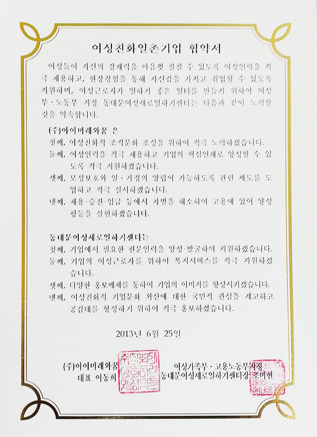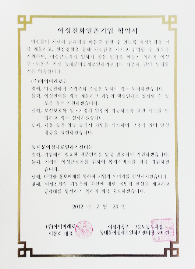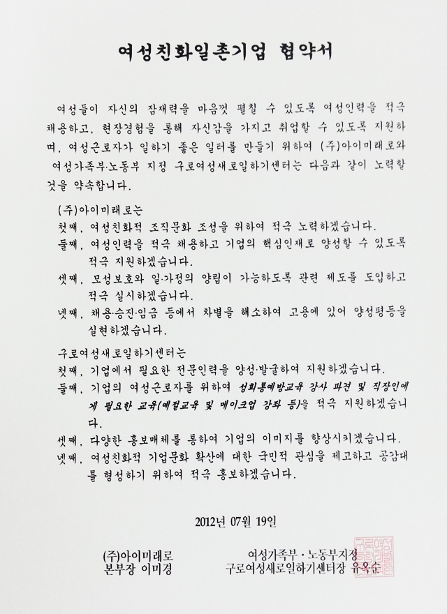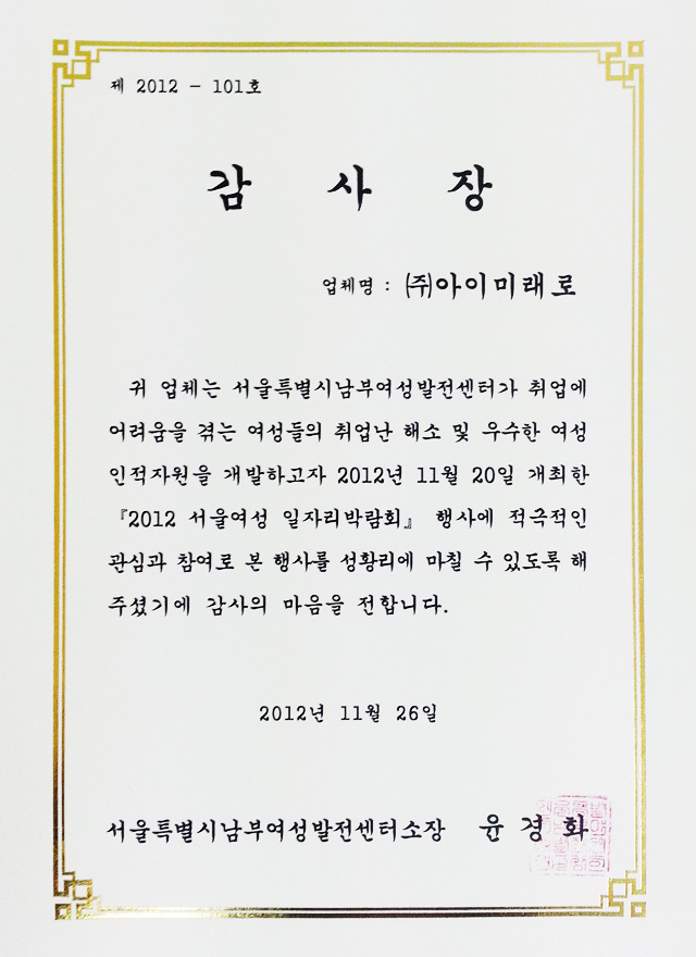 - 아이미래로 임직원 일동 -